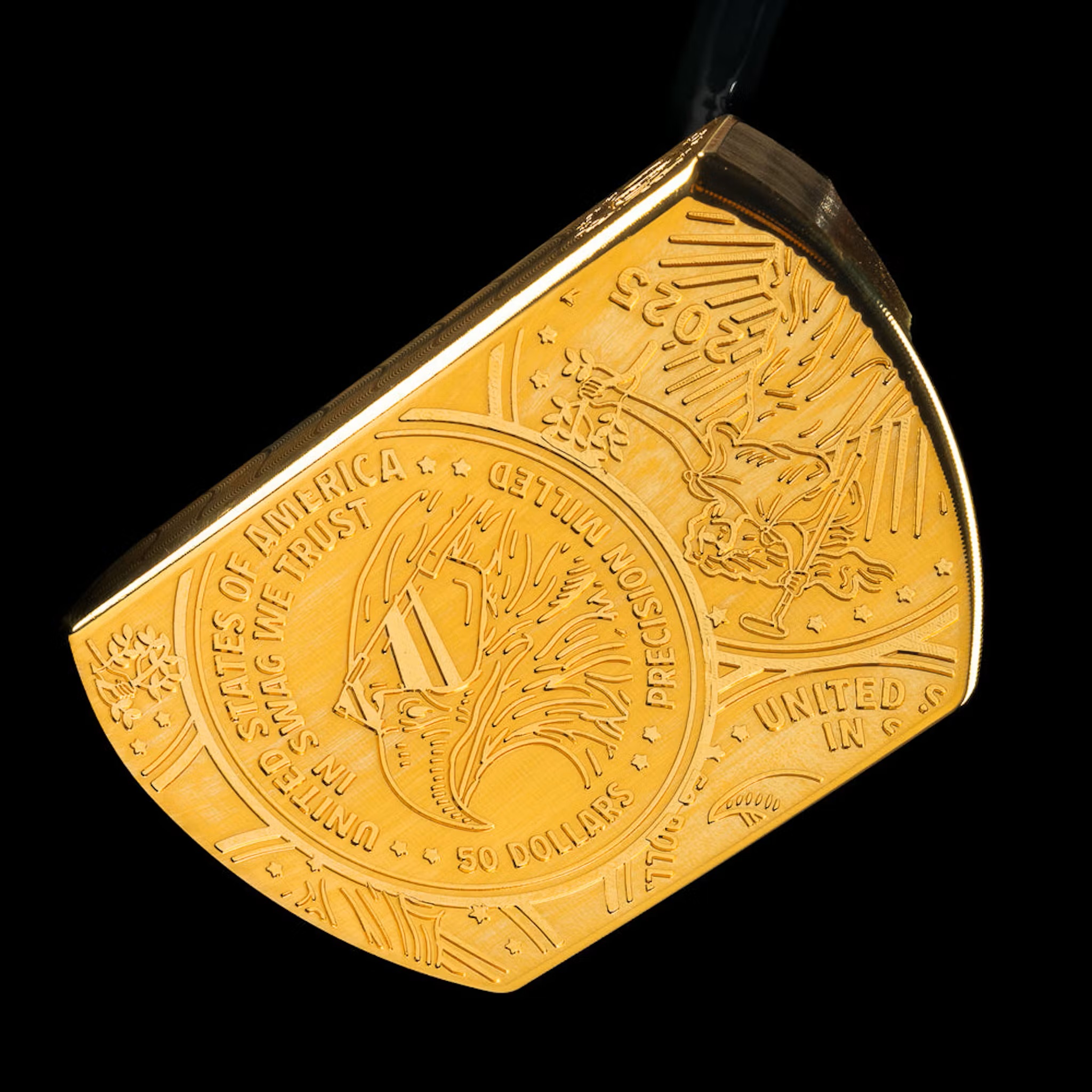 これはただのパターじゃない。まさに『見せびらかす』ための一本。 24金メッキの輝きと精密なミリングが融合したこのパターは、伝説の$50金貨をモチーフに誕生。 鷲の彫刻、コイン風のディテール、そしてフェースには『In SWAG We Trust』の刻印──転がすたびに贅沢の極みを演出。 専用のゴールド カバー付きで、週末のゴルフよりも金庫にしまっておきたいほどの逸品。もし実戦投入するのなら…パットを打つ前に同伴者の目をくらませる覚悟を。